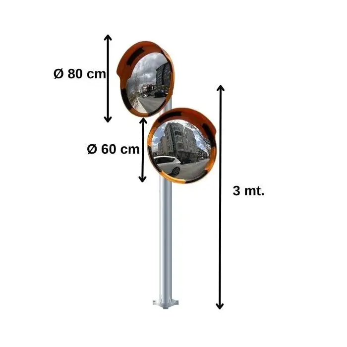 İki Adet Güvenlik Aynası – 3 Metre Galvanizli Direk Set, araç ve yaya güvenliğini maksimum seviyeye çıkarmak için tasarlanmış profesyonel bir trafik güvenlik ürünüdür. Set, iki adet yüksek kaliteli yuvarlak güvenlik aynası ve 3 metre uzunluğunda galvanizli direklerden oluşur. Özellikle otoparklar, site girişleri, kavşaklar ve görüş açısının sınırlı olduğu alanlarda kazaları önlemeye yardımcı olur.