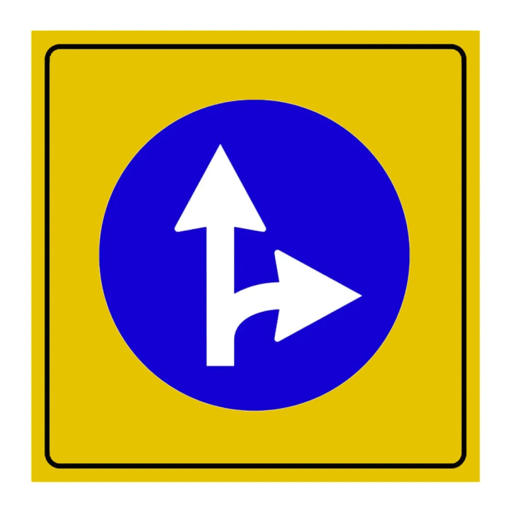 TT-35d İleri ve Sağa Mecburi Yön Levhası, sürücülere yol üzerinde hem ileri hem de sağ yönlere mecburi olarak ilerlemeleri gerektiğini bildiren resmi standartlara uygun bir trafik işaretidir. Bu levha, özellikle yol bakım ve onarım çalışmaları, kavşaklar, şerit daralmaları veya yol üzerinde geçici engellerin bulunduğu bölgelerde sürücülerin güvenli bir şekilde yönlendirilmesini sağlamak amacıyla kullanılır. Net ve anlaşılır sembolü sayesinde sürücüler levhayı kolayca fark eder ve hangi yönde ilerlemeleri gerektiğini önceden görerek güvenli bir şekilde trafiğe devam edebilirler.