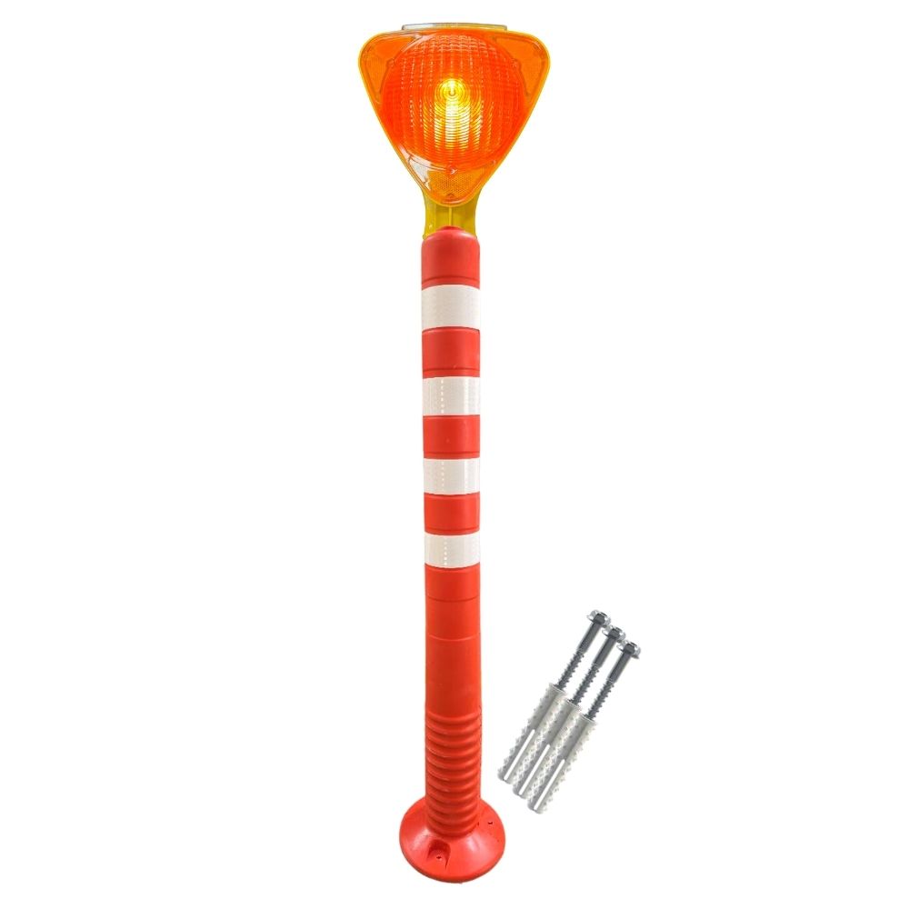 Üçgen Sarı Solar Flaşörlü 100 cm Delinatör Seti, özellikle dikkat gerektiren alanlarda sürücüleri ve yayaları uyarmak amacıyla kullanılan yüksek görünürlüklü bir trafik güvenlik ürünüdür. Üzerinde yer alan sarı renkli üçgen uyarı levhası ve güneş enerjili flaşör sistemi sayesinde gece ve gündüz fark edilmeyi kolaylaştırır. İnşaat alanları, otopark giriş-çıkışları, geçici trafik düzenlemeleri ve tehlike bölgelerinde uyarı amacıyla sıkça tercih edilir. Hareketli araç trafiği olan alanlarda dikkat çekici yapısıyla kazaların önlenmesine katkı sağlar.